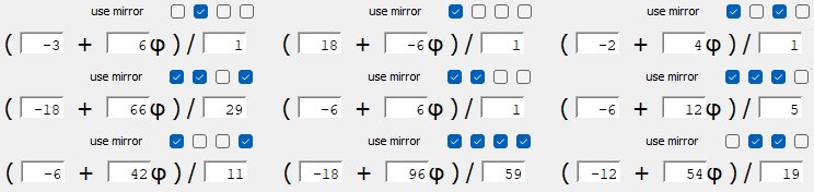 Instead of applying a specific scaling quaternion while generating the polychoron, one also can perform the scaling operation afterwards. Therefore, the following vZome model contains appropriate scaling tools for each specific truncation. The model also contains some scenes. The odd-numbered scenes respectively show the properly scaled projections of the rectified, regular, cantellated, cantitruncated, truncated, runcitruncated, runcinated, omnitruncated and bitruncated hecatonicosachora. Alternatingly, black and white connectors are used. The even-numbered scenes display the compound of the polychoron in the previous scene and the polychoron in the next scene. As both have differently coloured vertices, it is somewhat easier to study how they can be derived from each other.