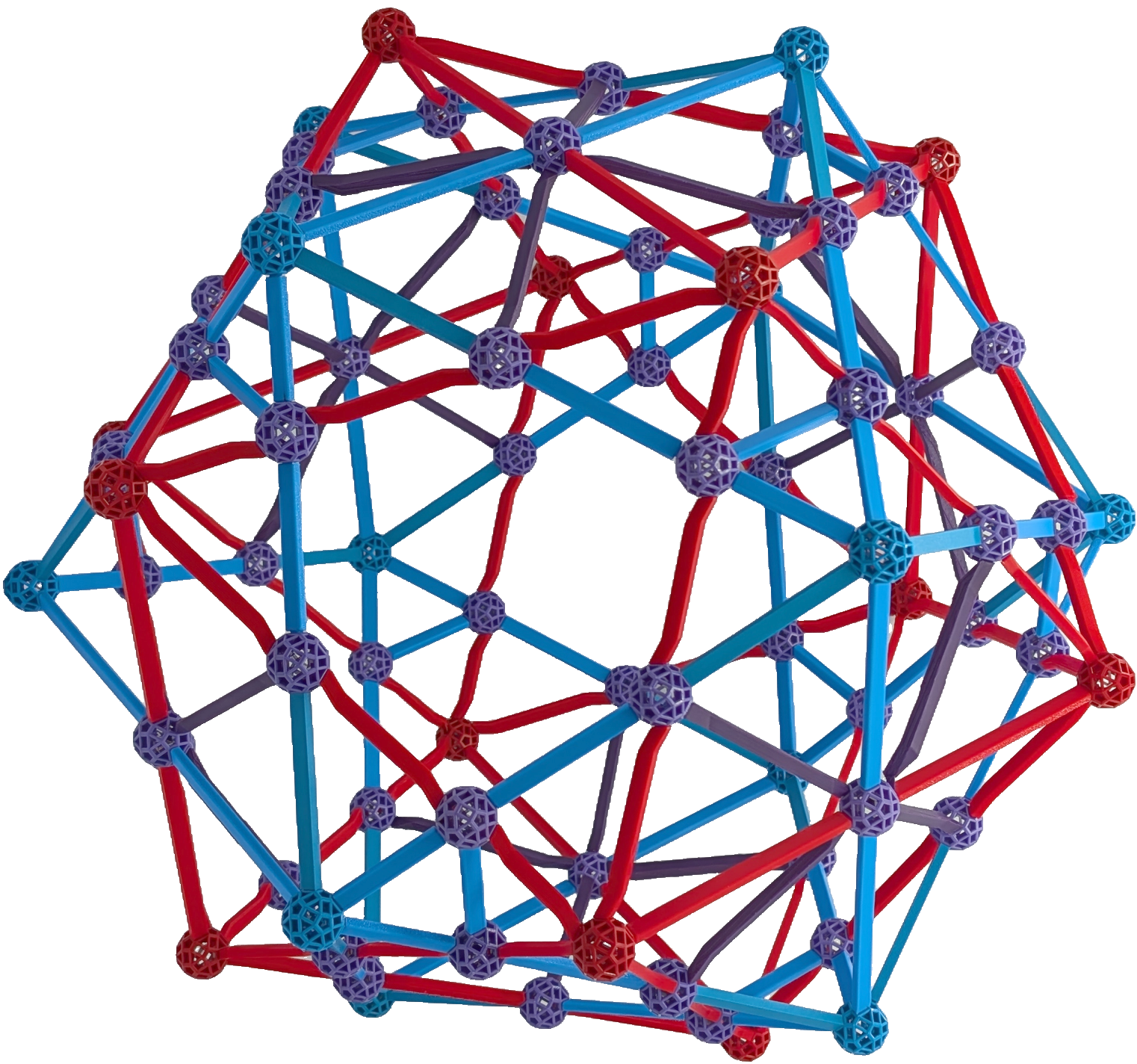 Faces of both icosahedra intersect in struts, labeled in vZome as automatic: they have not been assigned a vZome colour code. These alse have been 3D printed in purple coloured PLA, as shown in: